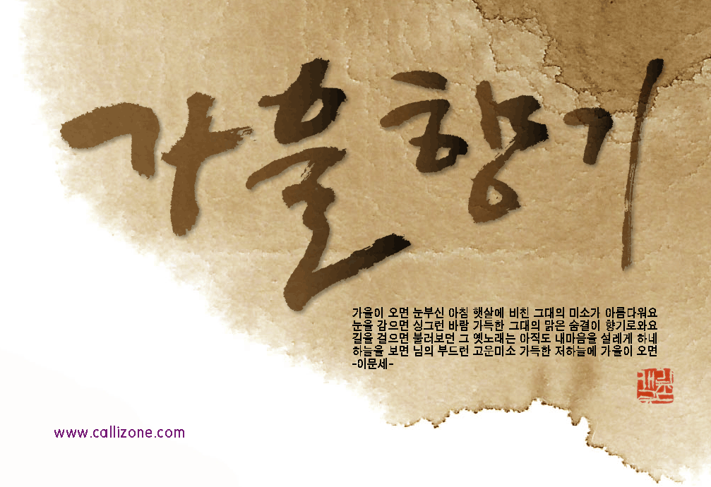 [직접쓴 캘리} 가을향기 callizone 일반 1 9392 2007.10.02 14:07 http://www.callizone.com/home/index.php + 568 가을이 익어가고 있습니다. 가을을 음미하면서 한번 만들어 보았습니다. 회원님들 감기조심 하세요^^